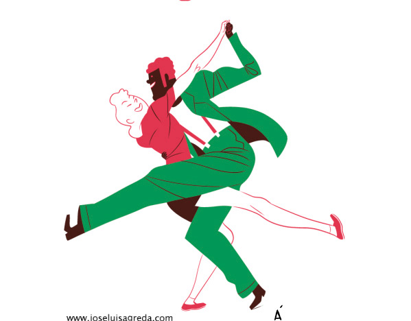 Algunos pasos de Lindy Hop. Una colección de postales hechas para el Sevilla Swing Festival. Risografías realizadas por el taller El Último Mono de Sevilla.