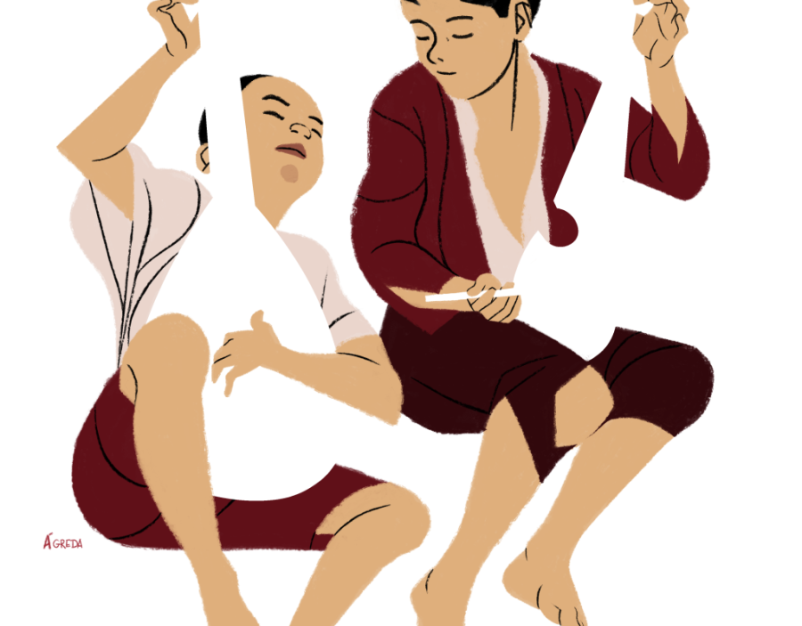 Illustration for Cosmopolitan magazine, 2017, regarding cuddling positions.